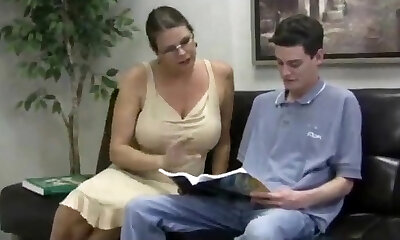Wondrous lady Tanya Tate helps the schoolteacher get comfortable in the school