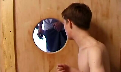 соблазнительная девчонка сосет хуй на gloryhole получает слизь душ